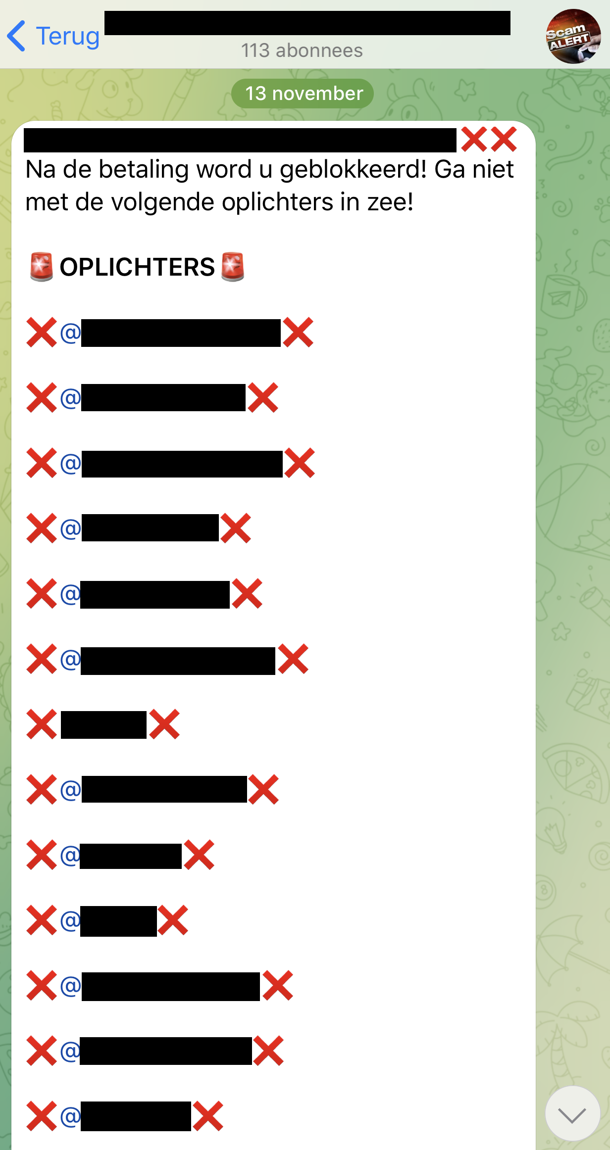 Een zogeheten 'Scammers Lijst'