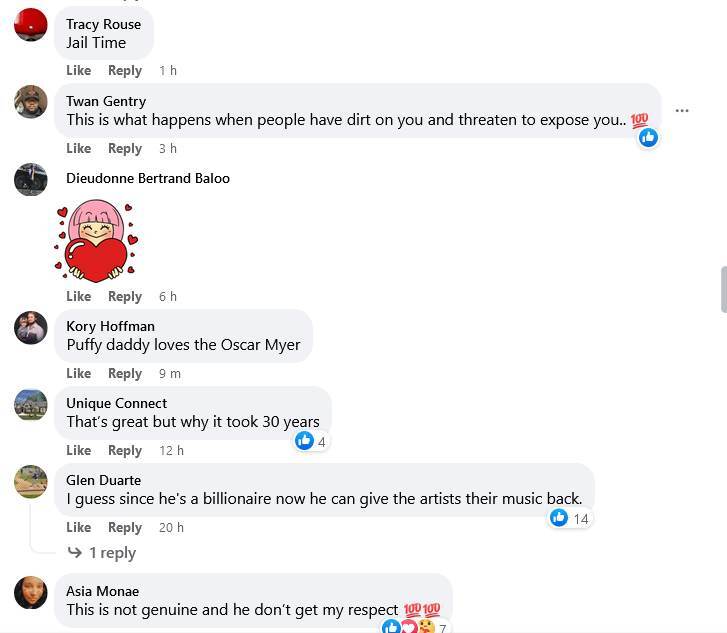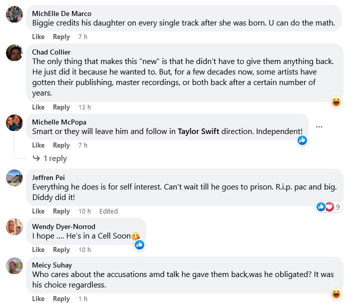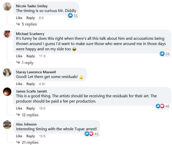 Alhoewel veel mensen zijn keuze om de muziekrechten aan de artiesten te geven erg kunnen waarderen, zijn er ook een hoop mensen die geen fan zijn van Diddy en hem niet vertrouwen. Ze denken dat het teruggeven van de muziekrechten niet zo'n nobele zet was als het leek. Sterker nog: ze beweren dat hij zijn artiesten hun muziekrechten geeft, om ze stil te houden. Er gaan namelijk al jarenlang complottheorieën rond over zijn rol in de moord op 2Pac...