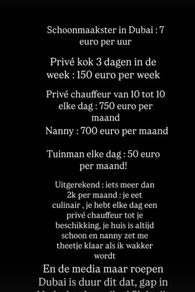 - Boef geeft inkijkje in goedkoper uitgavepatroon: "En de media maar roepen dat Dubai duur is"