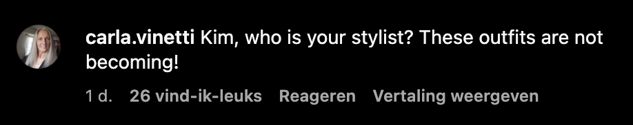 De fans weten zich geen raad met deze opvallende outfit van Kim Kardashian. Volgens sommigen is dit dan ook haar lelijkste outfit ooit. Zo reageerde iemand grappend onder haar foto: “Wanneer je koffer te zwaar is bij het inchecken.” Een ander vraagt zich hardop af wie Kim K gestyled heeft. Veel mensen zien daarnaast gelijkenissen met de huidige vrouw van Kanye West, Bianca Censori. Fans vragen zich daarom af of Kim de vrouw van haar ex bewust na-aapt.