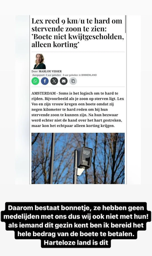 Boef zoekt familie die onderweg naar stervende zoon een boete kreeg: "Harteloos land is dit"
