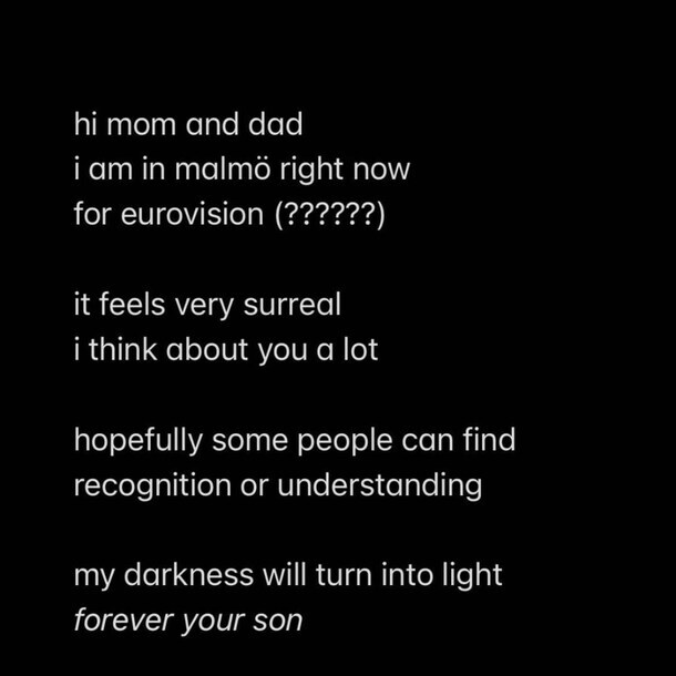 Hoewel Joost Klein aan de vooravond staat van het meest bijzondere optreden van zijn leven, moet hij dat helaas doen zonder de aanwezigheid van zijn ouders. De zanger was pas twaalf jaar oud toen hij zijn vader verloor aan kanker en niet veel later overleed zijn moeder aan een hartstilstand. In het ontroerende bericht op zijn Instagram Story brengt Joost zijn ouders op de hoogte van de bijzondere situatie waarin hij zich momenteel bevindt. "Hallo mam en pap, ik ben in Malmö voor het Eurovisie Songfestival."