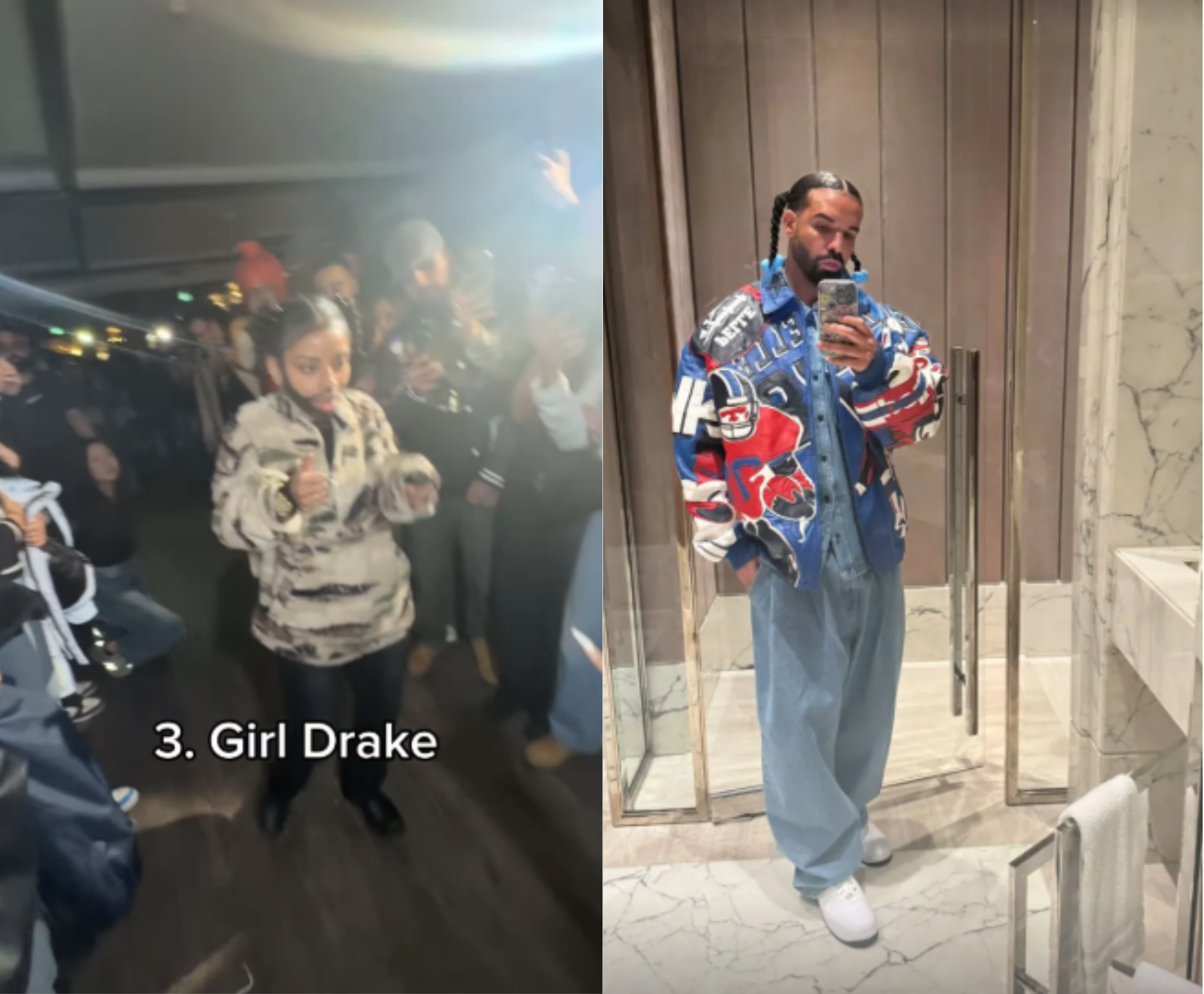 Makayla Chambers als 'Girl Drake' en de originele foto van Drake