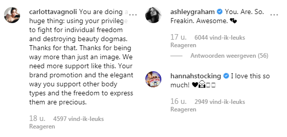 De reacties op de foto zijn wisselend. Zo zijn er veel mensen die het hypocriet vinden of hun walging uiten en zeggen helemaal klaar te zijn met het - in hun ogen voorheen 'perfecte' - model. Aan de andere kant komt er ook veel positief geluid van - vooral vrouwen - die Emily enthousiast supporten.