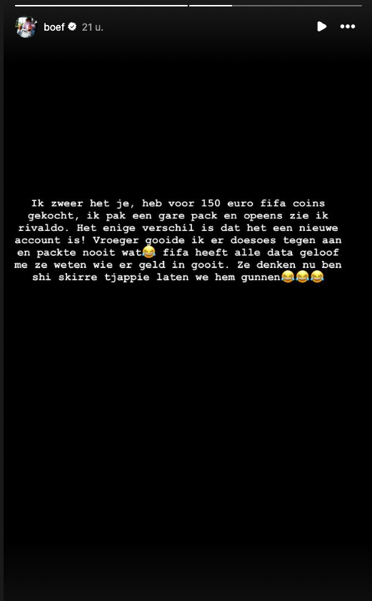 Artiest en zakenman Boef is niet vies van een potje FIFA; vandaag liet hij via zijn Instagram weten dat hij vroeger behoorlijk wat geld overhad voor de game.