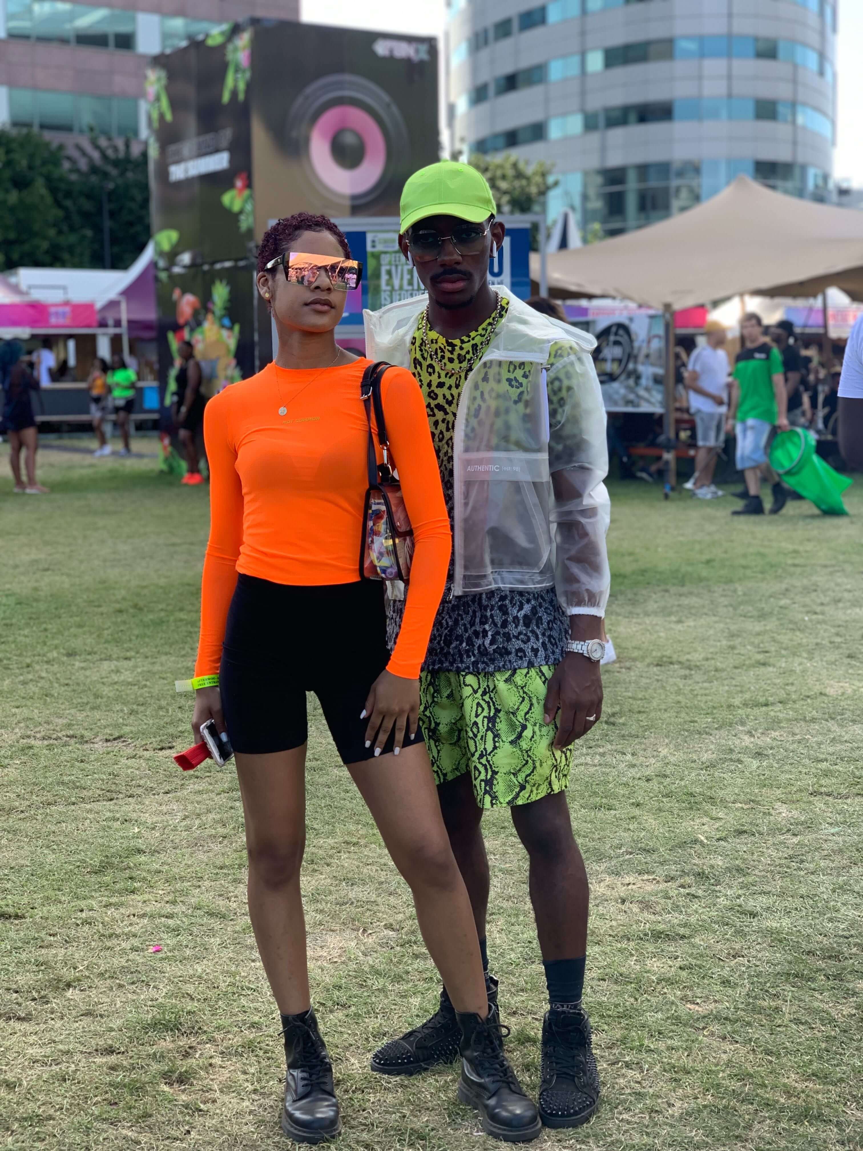 Julia: "Op een festival kan je wat meer losgaan met je looks. Mensen kleden zich lekker divers. Khareem: "Ik let niet echt op trends. Ik draag gewoon wat ik leuk vind staan. Wel een beetje flamboyant!"