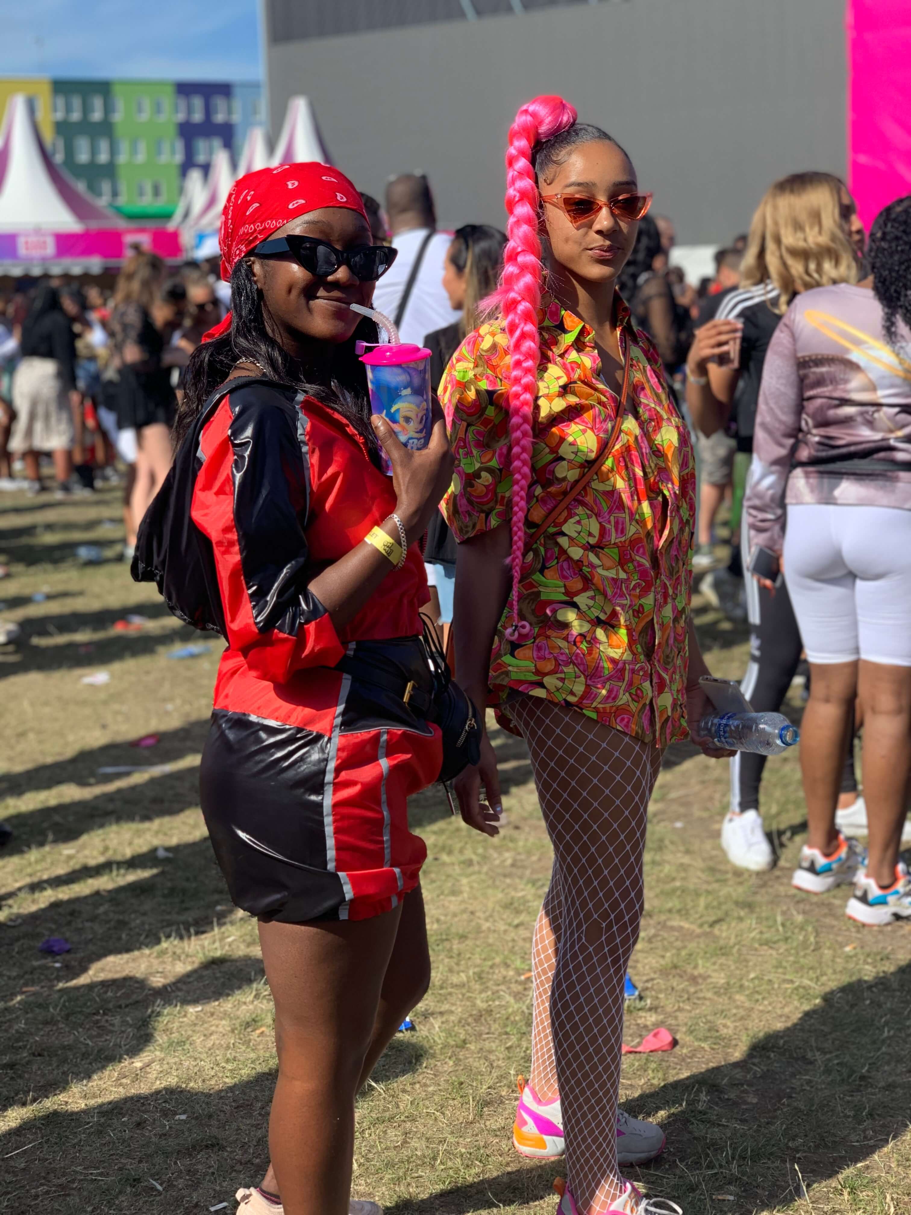 Deze kleurrijke dames komen straight outta London. Elk jaar reizen ze af naar Amsterdam om goede feestjes te pakken. De Nederlandse looks kunnen ze wel waarderen. Dajanee: "Iedereen doet zijn best. Ik maak mijn outfits altijd helemaal zelf. Alles wat ik draag, is handmade!"