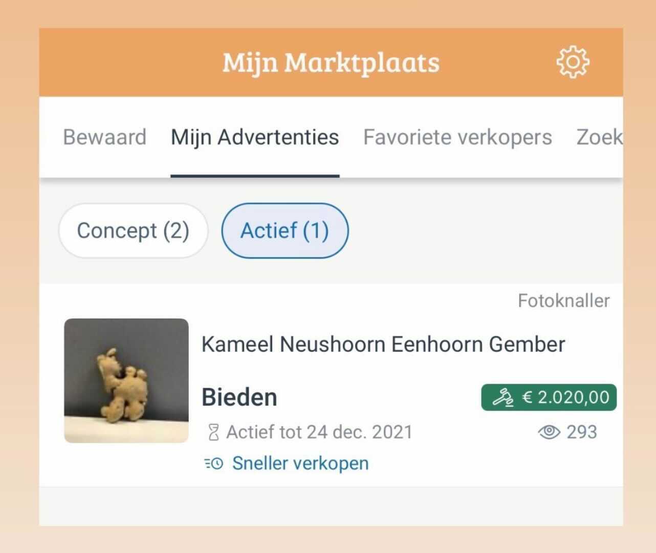 Gemberkameel aangeboden op Marktplaats: biedingen van meer dan 2000 euro