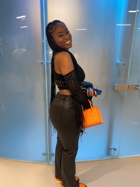 "Mijn vriendinnen vroegen me of ik mee wilde komen en ik dacht: waarom niet? Ik wist van tevoren dat ik iets zwarts wilde dragen en dat het moest matchen met mijn schoenen. Ik zou mijn outfit omschrijven als sexy, stoer en black. En de mouwen van mijn shirt zorgen ervoor dat mijn outfit compleet is."