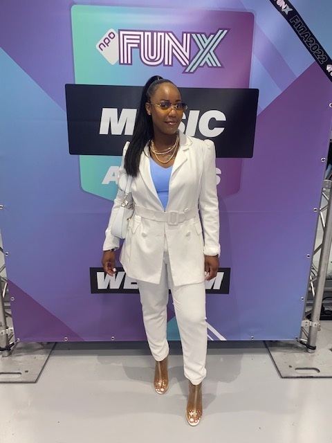 "Ik ben naar de FunX Music Awards gekomen om de artiesten te zien en voor de gezelligheid. Mijn outfit is comfortabel, classy en nice. Doordat ik vandaag deze outfit heb geshopt, had ik al snel door wat ik vandaag voor de show wilde aantrekken.”