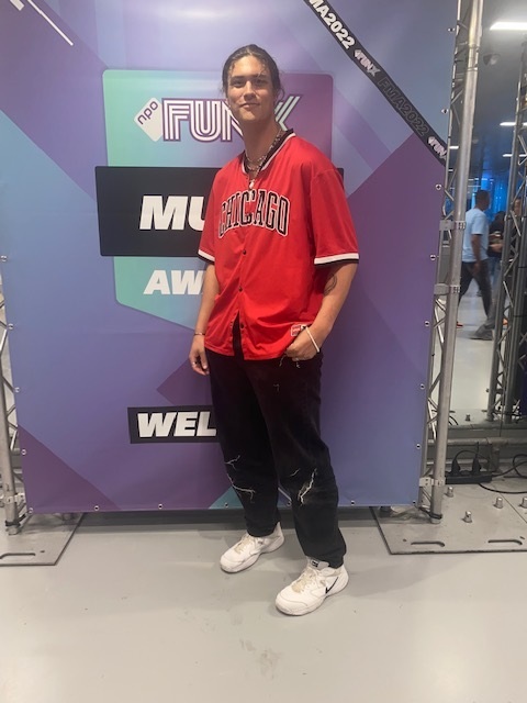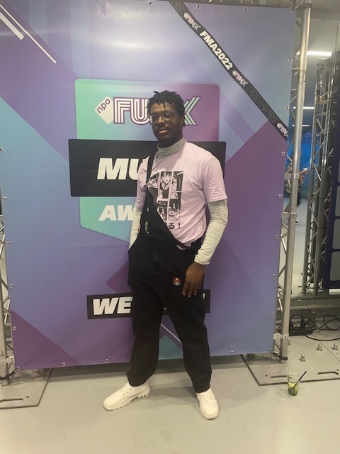 "Mijn outfit is geïnspireerd door J. Cole en zou ik omschrijven als streetstijl. Ik volg een mode-opleiding in Amsterdam, dus ik had daardoor niet lang de tijd nodig om een outfit uit te kiezen. Ik had speciaal voor de FunX Music Awards een outfit besteld, maar die is niet op tijd binnen gekomen. Deze outfit trek ik vaker aan en ik heb ervoor gekozen om 'm dan vandaag ook maar aan te trekken. De ketting en mijn ringen zorgen ervoor dat mijn outfit compleet is. Zonder sieraden is je outfit 'mwah'."