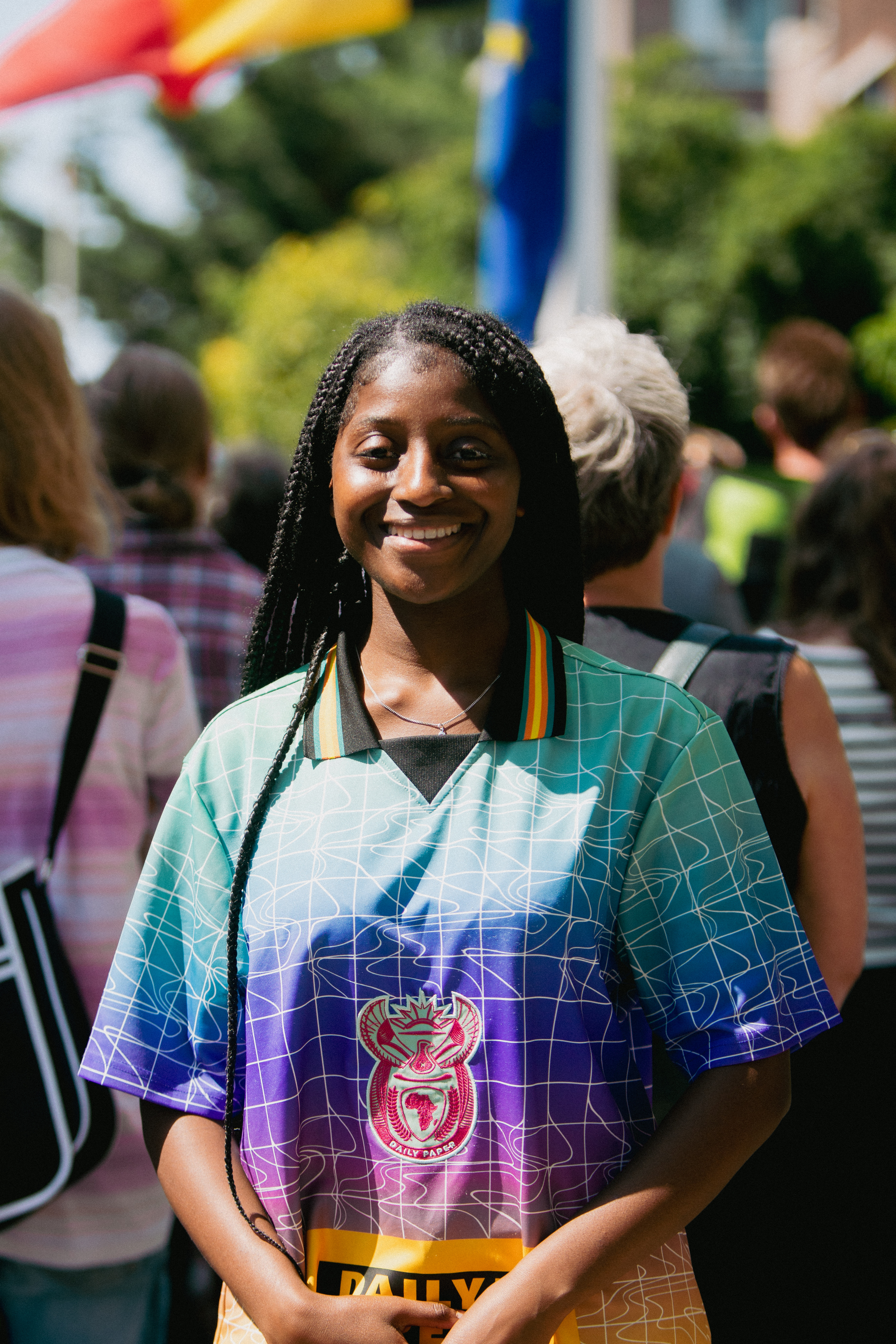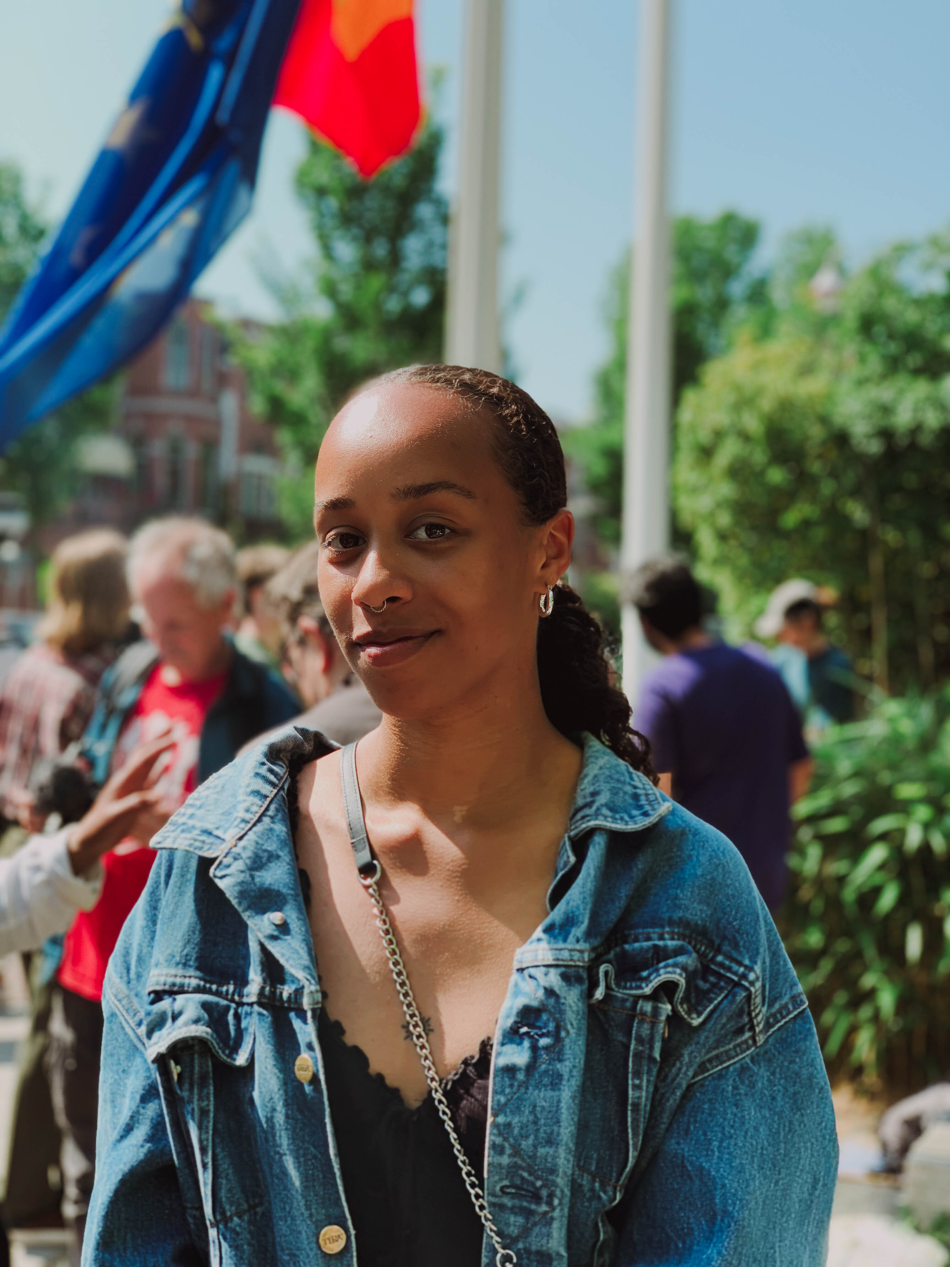 Ik vind het belangrijk om bij dit solidariteitsprotest te zijn, omdat wij het weerwoord hebben tegen deze ontgroeningscultuur. Maar we zijn hier ook als weerwoord tegen uitsluiting. Het gaat nu namelijk over een zwarte jongen die geen gerechtigheid heeft gehad van de justitie. We willen zeggen: 'Sanda's leven is heel veel waard'. Met deze demonstratie willen we mensen wakker maken. Accepteer niet zomaar bepaalde culturen die al jaren bestaan, maar creëer je eigen norm. Ik hoop dat er verandering komt in hoe we kijken naar dit soort culturen en hoe dat doorwerkt in de samenleving en instellingen."