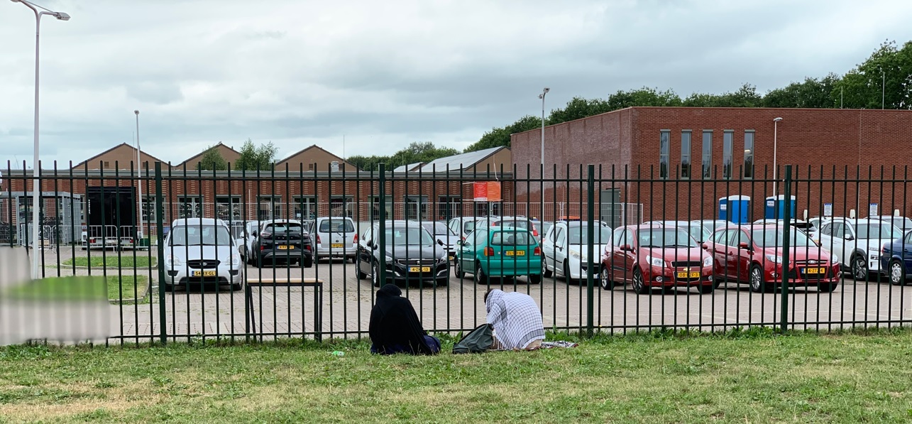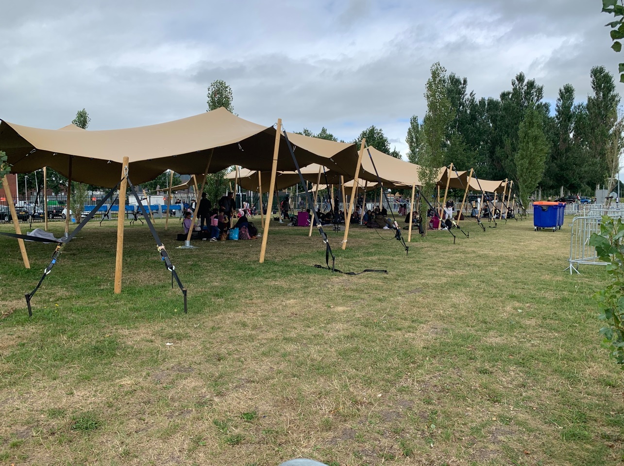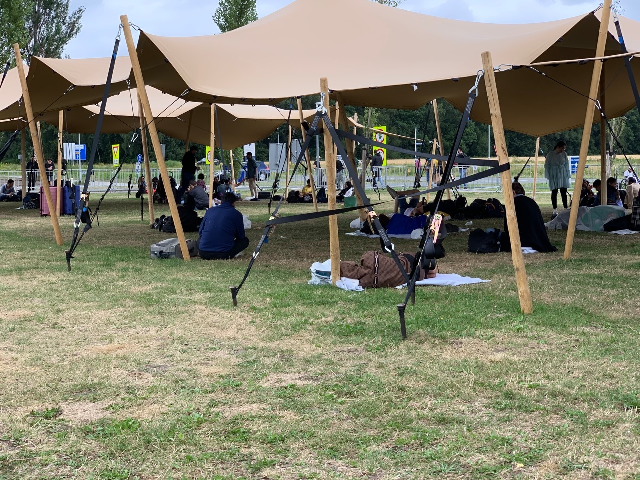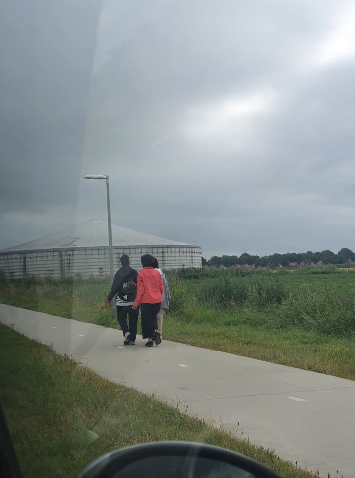 Eenmaal de laatste afslag naar links genomen, leek het alsof ik in een andere realiteit terechtkwam. Voor de hekken van aanmeldcentrum Ter Apel zag ik mensen zitten en liggen op een grasveld, wachtend totdat ze eindelijk werden opgeroepen. Tegen de zon en de regen is een soort partytent opgezet als beschutting. Toen ik de parkeerplaats naast het grasveldje opreed, zag ik een man dichtbij een boom op de grond slapen met witte dekens over hem heen. Ik parkeerde mijn auto en liep vervolgens naar de wachtende mensen op het grasveldje.