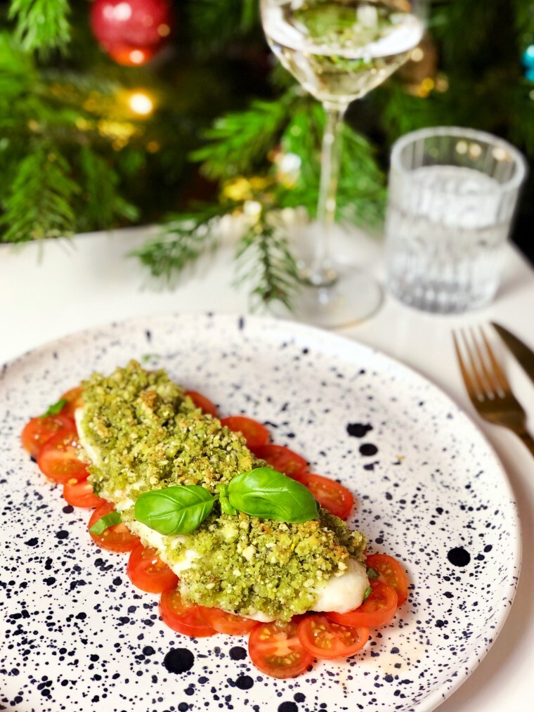 3. Hoofdgerecht: Vis met een knapperig dakje op een bedje van frisse tomaat