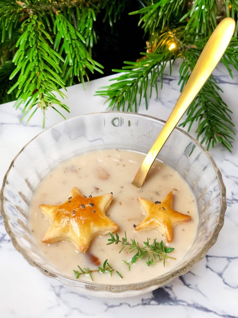 1. Voorgerecht: Paddenstoelensoep met bladerdeeg-ster