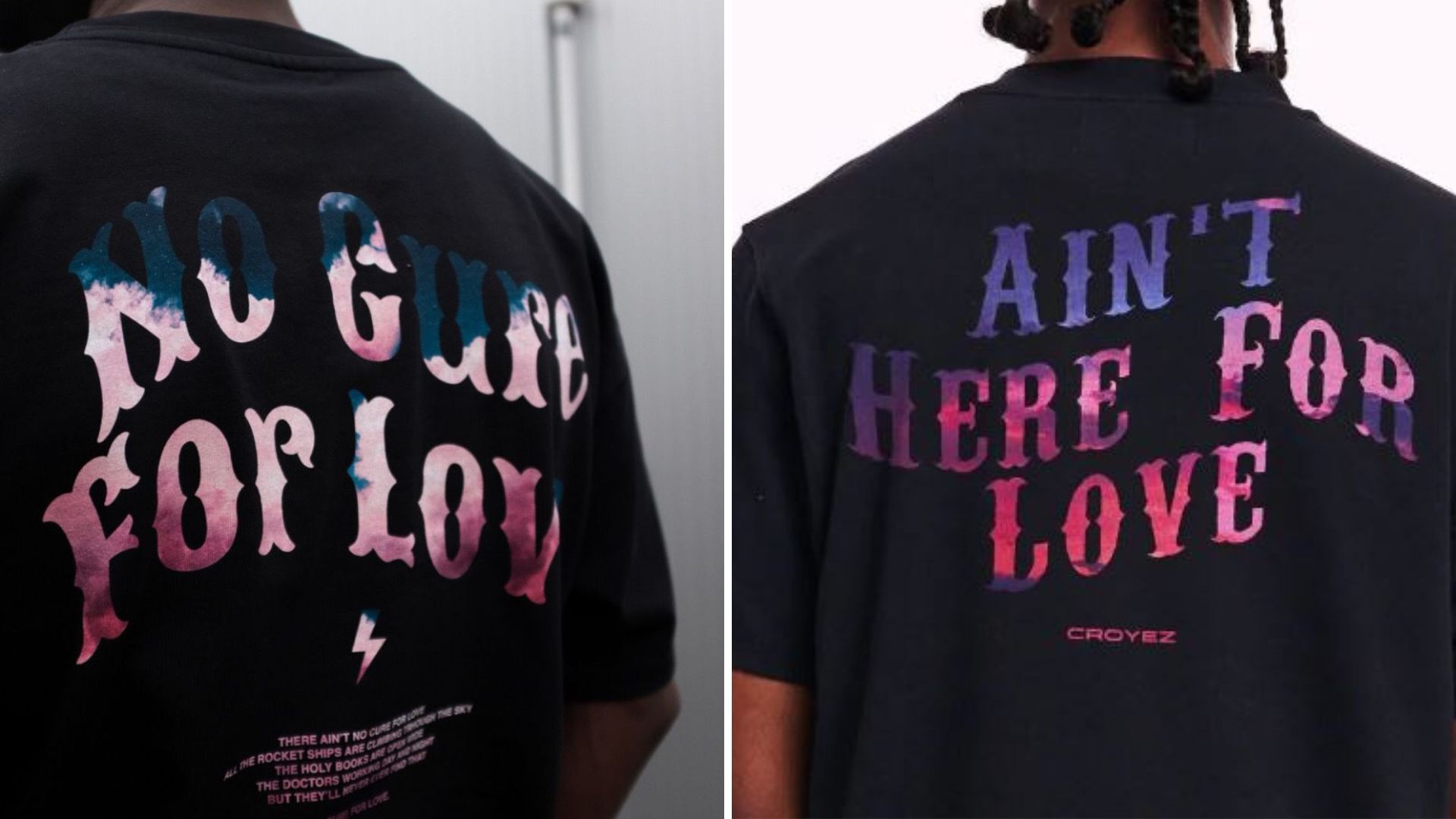 Zo ging het hem onder meer om de 'Ain't Here For Love'-tee van het merk, dat volgens Geronimo nagenoeg volledig op de 'No Cure For Love'-tee van Ninetyfour lijkt. "De kleuren, het ontwerp, de vormgeving, de stijl en zelfs de essentie van de tekst. Je gaat me toch niet vertellen dat dit per toeval zo erg met elkaar overeenkomt?"