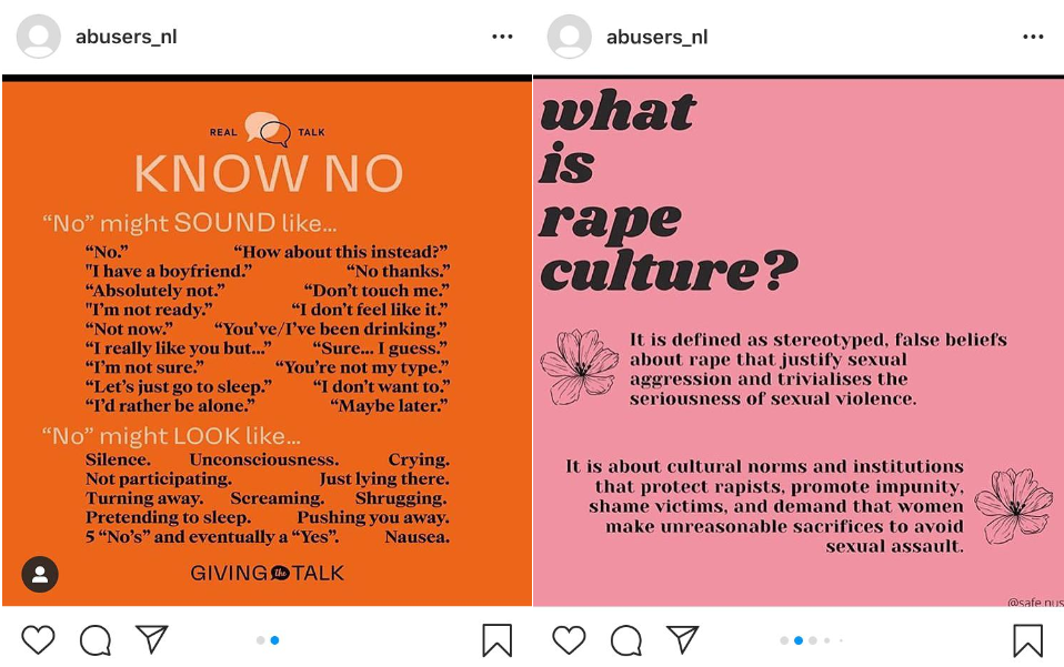 Voorbeelden van informatieve posts op @abusers_nl