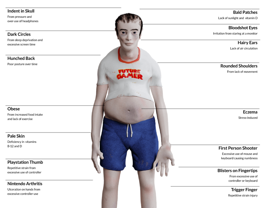 Gameverslaving is officieel erkend door de World Health Organization en moet volgens de onderzoekers serieus genomen worden. Het onderzoek nam allerlei factoren in behandeling die gelinkt zijn aan overmatig gamen. Denk daarbij aan slaaptekort, weinig zonlicht en dus vitamine D-tekort, vermoeide ogen, uitdroging en de zogeheten 'Playstation-duim'. Op basis van alle die gebreken en diverse wetenschappelijke studies op het gebied van gameverslaving, maakten de onderzoekers een model genaamd Michael, waarmee zij simuleren hoe een fervent gamer er over 20 jaar uitziet.