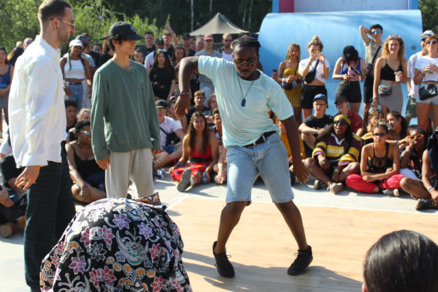 Headspins, waves en bodyrolls. Op Woo Hah! liet niet alleen het publiek z'n beste moves zien. Zo'n vijftien ervaren dansers trokken op het kleinste podium op Woo Hah! een groot aantal toeschouwers. Bij zieke breakdance moves en beat kills - precieze bewegingen op details in de muziek - ging het publiek los! Kijk mee naar de hoogtepunten van de breakdance versus hiphopdansers battle en maak kennis met een paar van de dansers.