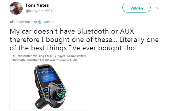 Fans tipten Example dat hij voor Jordan een FM-transmitter had kunnen kopen in plaats van een auto met aux-ingang. Zo'n klein apparaatje kost nieuw maar een paar tientjes, terwijl een nieuwe auto duizenden dollars kost.