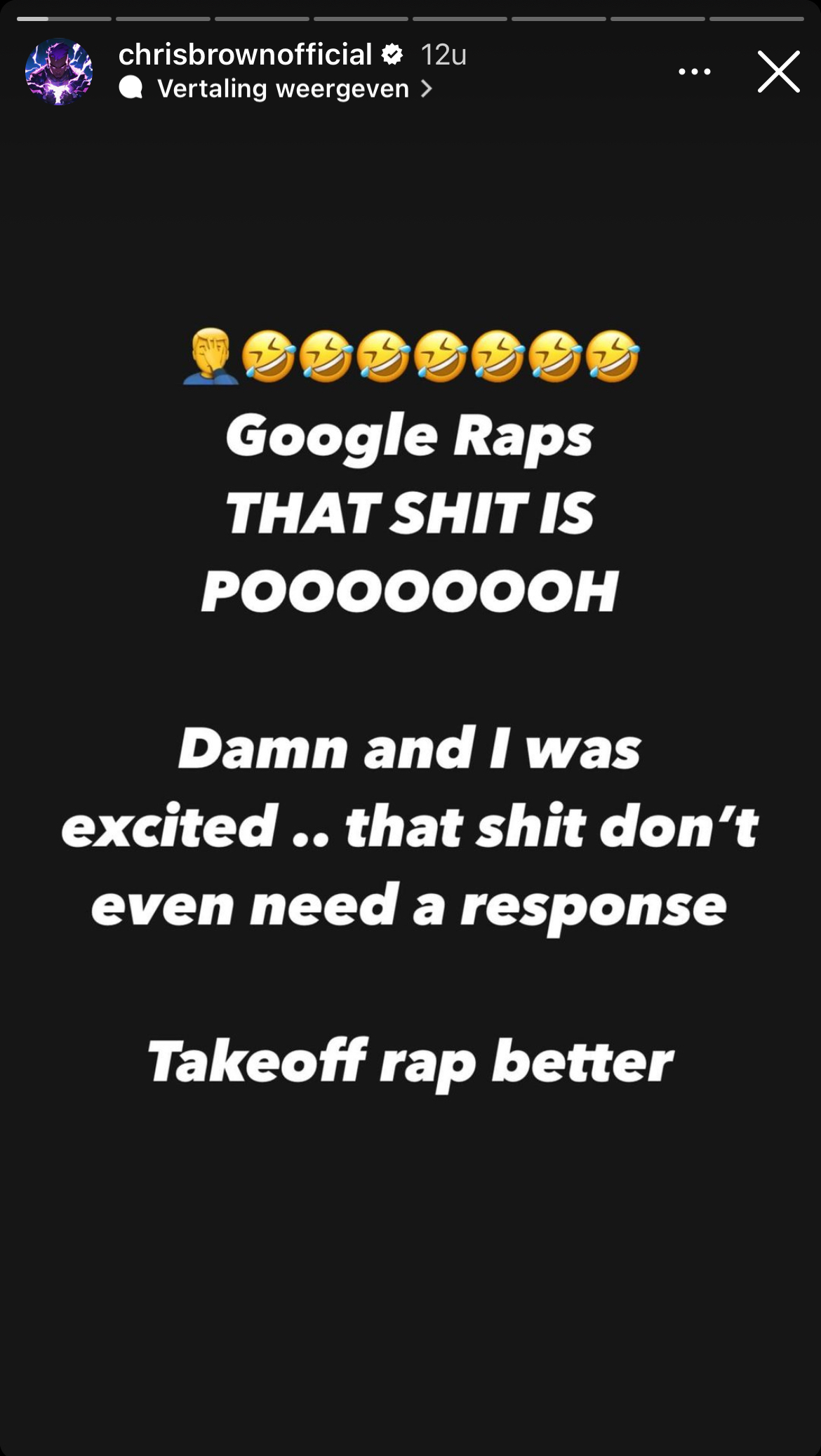 Quavo heeft met deze disstrack zelfs een soort ode gebracht aan zijn neef en Migos-partner door hem een AI-verse te geven op deze tune. Chris Brown was in ieder geval meer onder de indruk van de AI-versie van Takeoff dan Quavo zelf. “Takeoff rapt beter dan jou.”