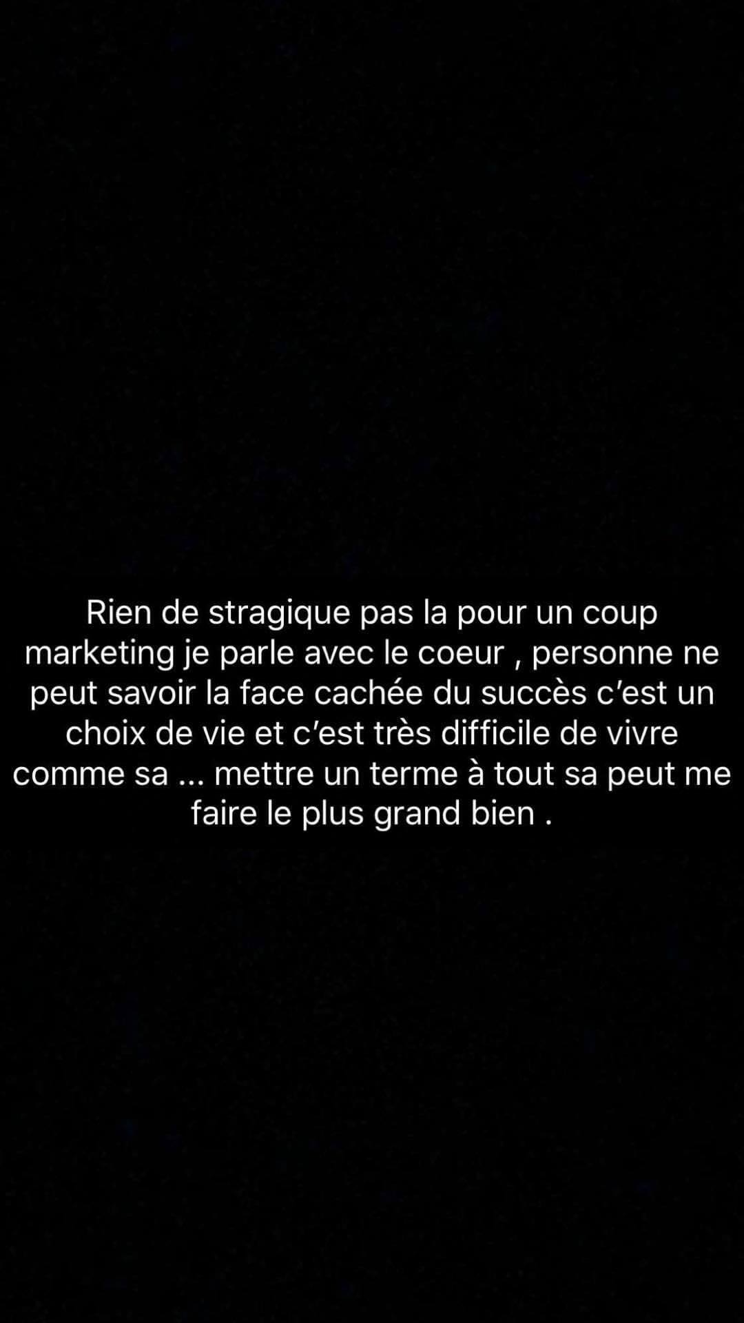 "Ik denk dat ik ga stoppen na dit album. Dit leven is niets voor mij," schrijft MHD op Instagram. Zo vlak voor de release van zijn album klinkt het als een marketingstunt, maar dat ontkent de rapper in zijn berichten: "Dit is niets strategisch en geen marketingtruc. Ik spreek met mijn hart. Niemand kent de keerzijde van het succes. Het is een manier van leven die heel moeilijk is. Een einde maken aan alles is voor mij het beste dat ik kan doen."
