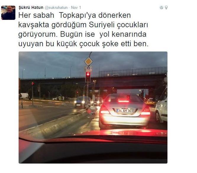 Een Syrisch meisje lag te slapen aan een drukke weg in Istanbul. Een langsrijdende man fotografeerde het meisje en postte de foto op zijn Twitter.
