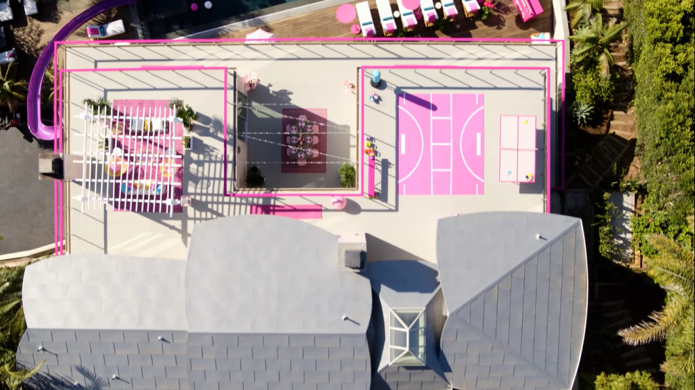 De knalroze villa heeft twee slaapkamers, twee badkamers en unieke gedeeltes zoals een bioscoop, sportveld, meditatiekamer en een zwembad met glijbaan. Ook is er een sicke inloopkast met alle outfits van Barbie die de afgelopen zestig jaar uit zijn gekomen, maar dan op levensecht formaat.