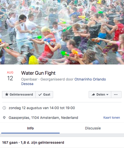 Wie heeft er zin een beetje verkoeling op de ouderwetse manier: een waterpistolengevecht! Volwassen of niet, stof je Super Soaker af, want op zondag 12 augustus vindt de Water Gun Fight plaats in het Amsterdamse Gaasperplas.