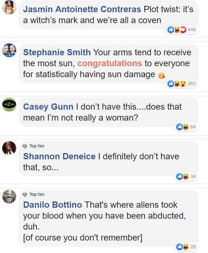 Op Facebook wordt druk gespeculeerd over welke theorie er achter deze mysterieuze matchende moedervlek zit...