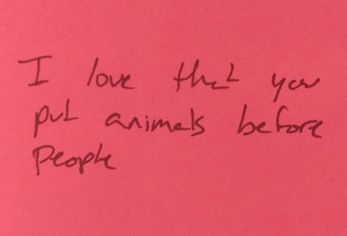 "Ik houd ervan dat je dieren boven mensen plaatst"