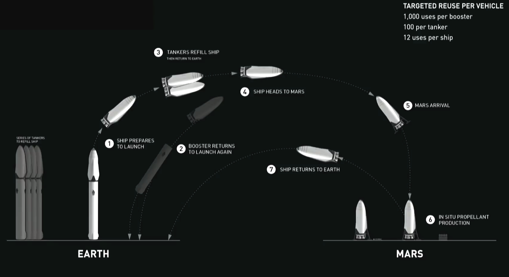 Elon Musk gaat er alles aan doen om het project betaalbaar te maken en hoopt op ongeveer 200.000 dollar per ticket. "Je kunt geen zelfvoorzienende samenleving creëren als de vlucht 10 miljoen dollar per ticket gaat kosten," aldus de miljonair. Wat de kosten kan drukken zijn de herbruikbare raketten van SpaceX. Het is het ruimtebedrijf al gelukt om de Falcon 9-raket al zes keer te laten landen op aarde. Met het huidige ontwerp moet een raket 12 tot 15 keer hergebruikt kunnen worden.