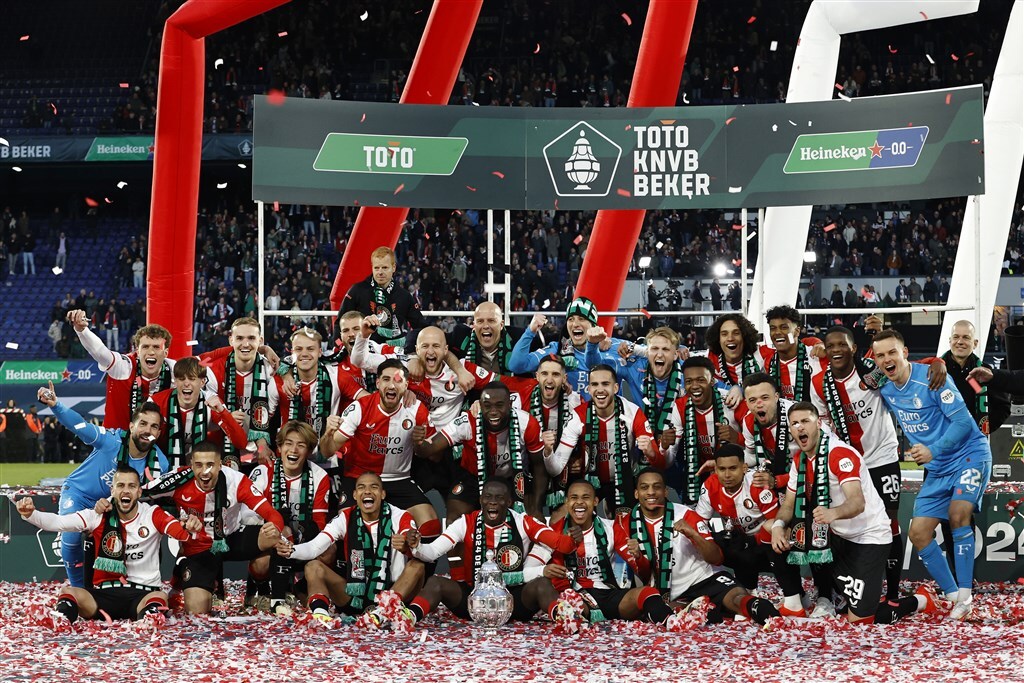 Feyenoord versloeg NEC uit Nijmegen gisteren in een zenuwslopende finale. De wedstrijd werd namelijk meerdere malen stilgelegd vanwege vuurwerk en een spandoek dat in brand vloog. Hoewel de Rotterdammers na bijna een uur spelen op voorsprong kwamen door een goal van Igor Paixão, bleef het lang spannend. Zo kreeg Yankuba Minteh niet veel later een rode kaart en moest Feyenoord het laatste gedeelte van de wedstrijd afmaken met tien man. Mede door goed keeperswerk van Timon Wellenreuther en een uitblinkende Quinten Timber wisten de Rotterdammers de 1-0 overwinning uiteindelijk toch over de streep te trekken.