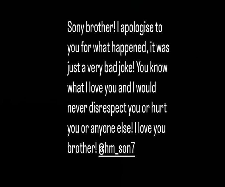 Inmiddels heeft Bentancur op Instagram zijn excuses aangeboden aan zijn ploeggenoot Heung-min Son. Op Instagram Stories reageerde de Uruguayaan: "Sonny, broer! Ik bied je mijn excuses aan voor wat er is gebeurd, het was gewoon een hele slechte grap." Ook eindigt de voetballer het bericht met: "Je weet dat ik van je hou en ik zou je nooit respectloos behandelen of jou of iemand anders pijn doen!"