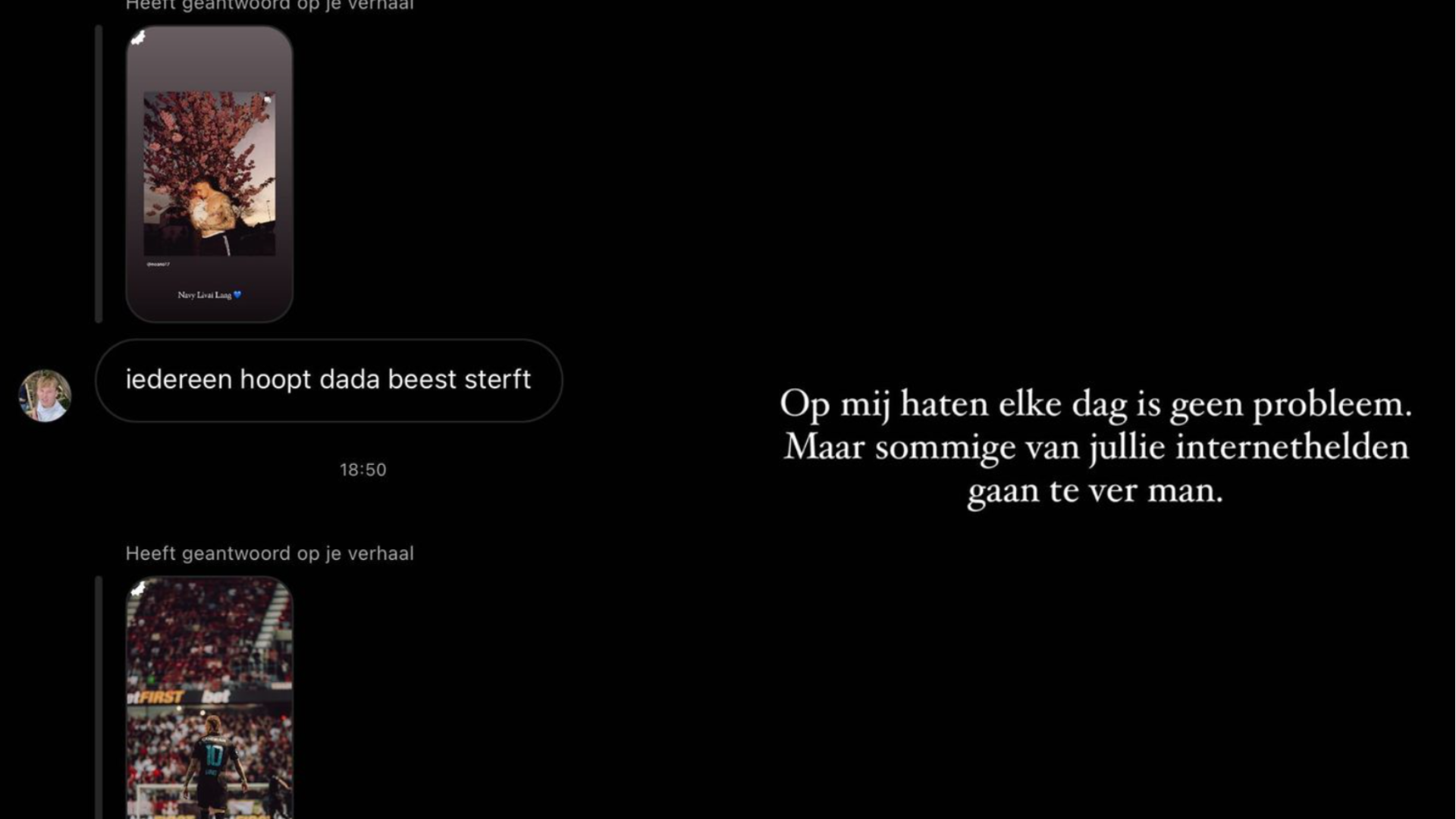 Noa Lang is wel wat gewend wat betreft haatberichten, maar dat zijn pasgeboren zoon nu het doelwit is, gaat hem veel te ver. De speler post kort na de screenshot van de haat reactie zijn eigen reactie: "Op mij haten elke dag is geen probleem. Maar sommige van jullie internethelden gaan te ver man." Vervolgens deelt Lang het profiel van de zogenaamde 'internetheld'.