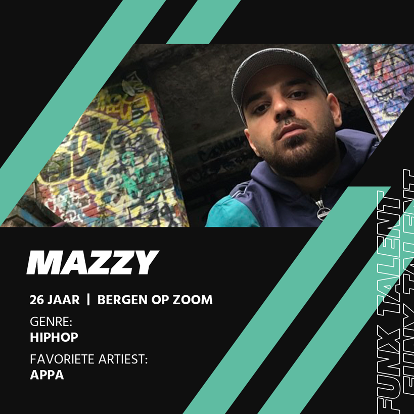 Muziek luisteren en maken is Mazzy's medicatie. Maar zijn gevoelens op papier zetten en het vervolgens delen met de wereld, is zijn passie! Mazzy laat zich graag inspireren door artiesten als Appa, Lijpe, Kevin en Hef.