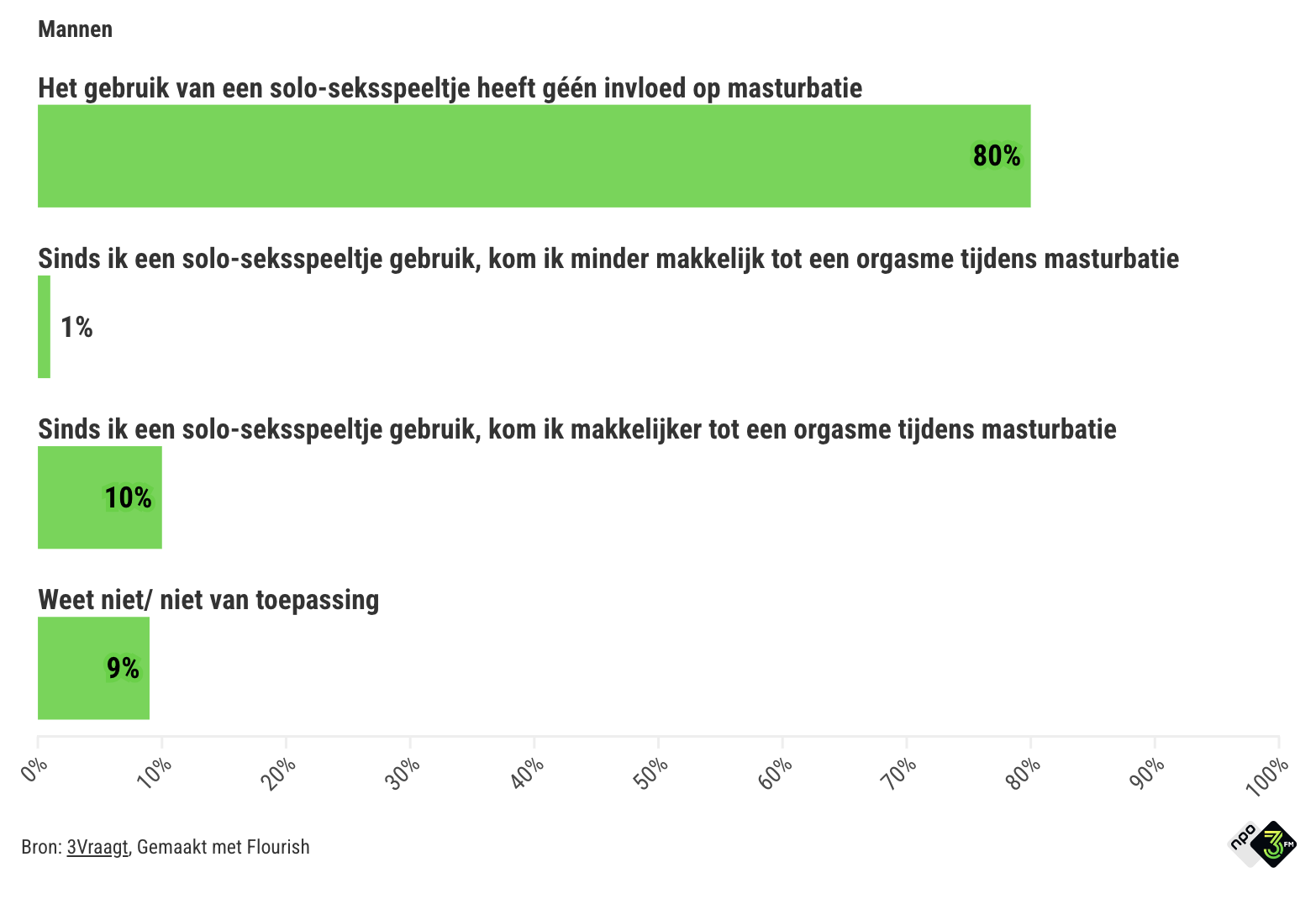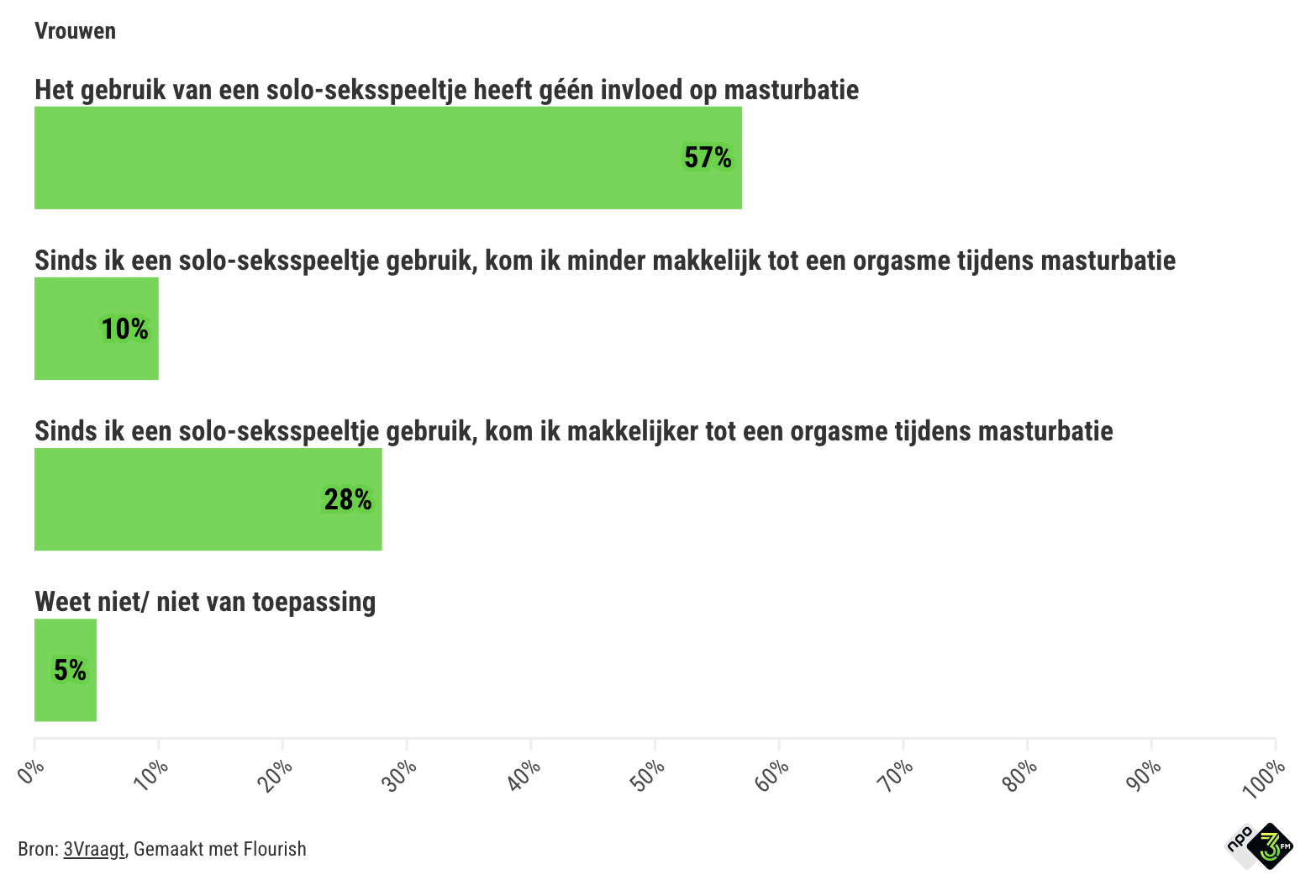 De onderzoeksresultaten zijn naar voren gekomen nadat er meer dan 3340 jongeren (zowel vrouwen als mannen) ondervraagd zijn over hun seksleven. Tijdens het onderzoek gaf tachtig procent van de vrouwen te kennen dat ze sneller een orgasme bereiken bij het gebruik van een seksspeeltje. Hiervoor gebruiken de meeste vrouwen een vibrator of de Satisfyer. 45 procent van de mannen heeft aangegeven in het bezit te zijn van een seksspeeltje.