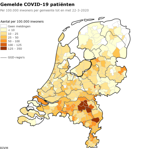 Coronakaart 22 maart. Bron: RIVM