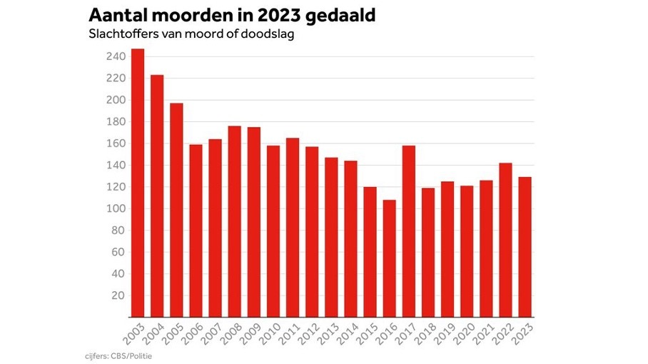 De afgelopen jaren is er een fluctuatie gaande van het aantal geweldsdoden. Zo stegen de moordcijfers in 2022 en daalden ze weer in het afgelopen jaar. In de afgelopen twintig jaar is er wel een algehele daling te zien in de cijfers. Zo zijn de cijfers anno 2023 bijna gehalveerd ten opzichte van 2003. Volgens een woordvoerder is het moeilijk te zeggen hoe de dalende lijn te verklaren is.