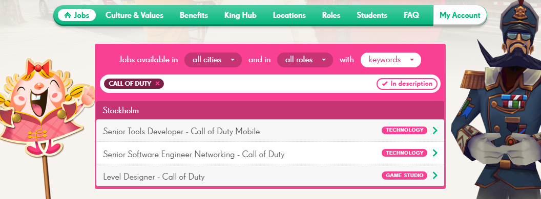 King zoekt een Senior Tools Developer, een Senior Software Engineer Networking en een Level Engineer voor Call of Duty Mobile. Het gaat om een samenwerking met Activision Blizzard die tot een frisse, sociale en een sterk toegankelijke app zou moeten leiden. Dit nieuws betekent niet direct dat het om een mobiele game van Call of Duty gaat. Het zou ook een tweede scherm kunnen zijn, zoals de companion apps die je tegenwoordig steeds vaker ziet opduiken bij games, maar daar heb je waarschijnlijk geen level engineer voor nodig.
